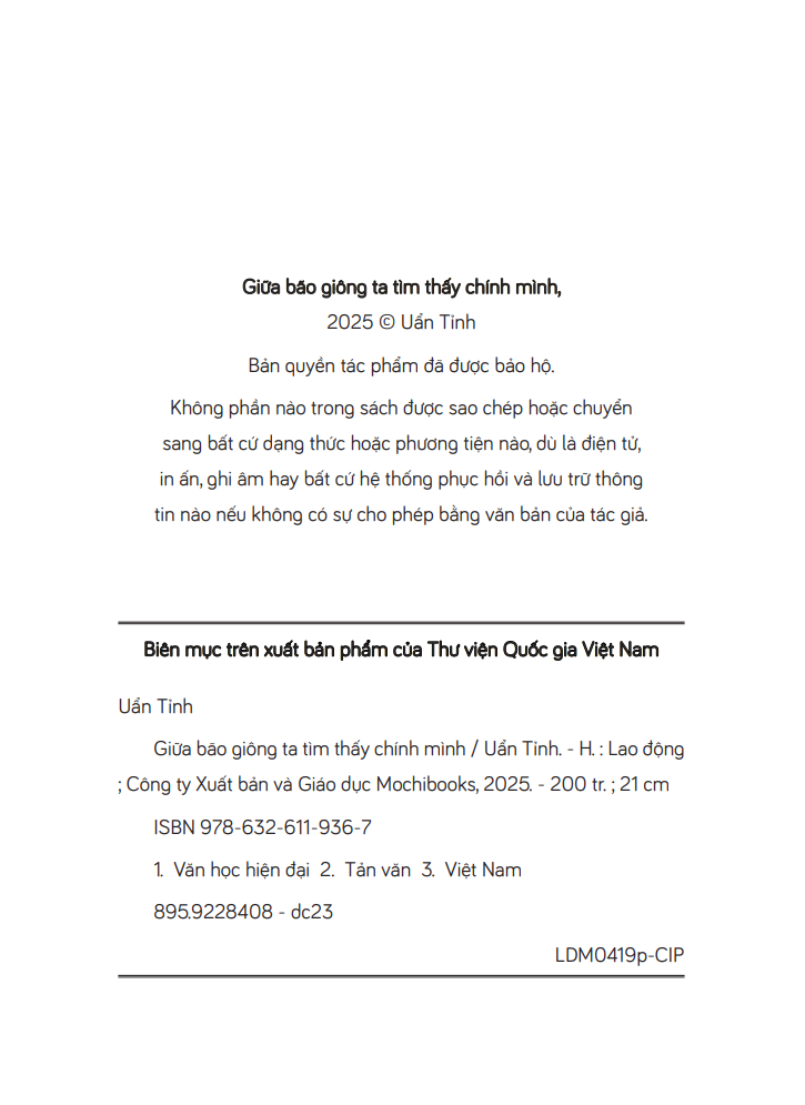 Trong cuộc đời mỗi người, ai cũng có những lần vấp ngã, những nỗi đau thầm lặng và những chặng đường cần tự mình bước qua. Cuốn sách nhỏ này ra đời từ chính những trải nghiệm như thế. Giữa bão giông ta tìm thấy chính mình với mong muốn mang đến sự dịu dàng và an yên cho tâm hồn bạn đọc. Mỗi trang viết là một lời thủ thỉ tâm tình, khi nhẹ nhàng an ủi, khi lặng lẽ gương soi, giúp ta nhận ra chính mình rõ hơn và “mình không cô đơn trên hành trình trưởng thành và chữa lành”.